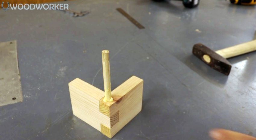 Если вам нужно сделать аккуратное и очень надежное соединение шип паз, то после подготовки заготовок, их можно сложить и просверлить поперек. Тогда в это отверстие вбивается шкант.
