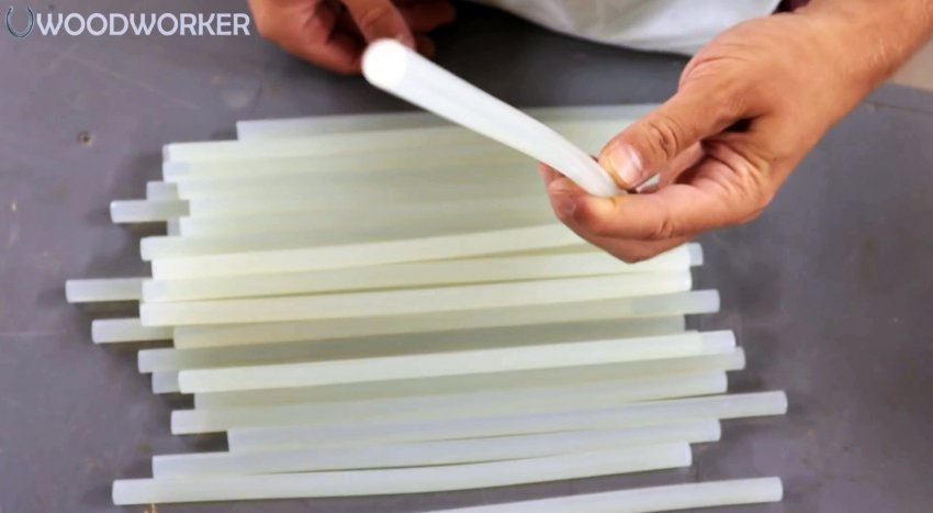 Наждачные шкурки можно очень легко очищать от налипшей древесной пыли обычными клеевыми стержнями.