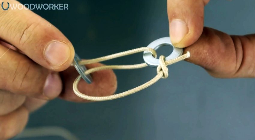 Теперь если подвешивать что-то на полученной петле, то перетягивая шайбы можно менять длину шнура. Причем скользить он сам по ним не может, для этого нужно убирать нагрузку.