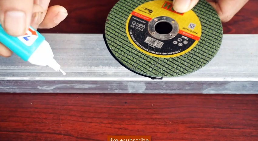 Далее необходимо отметить за этой точкой вторую, на отдалении от линии равным расстоянию нарисованной окружности. Можно просто взять диск от болгарки с таким же округлением, приложить его к нарисованной дуге, и поставить метки по ее краям. Затем он устанавливается одной точкой на начало линии, и прокатывается по трубе. В месте касания второй его точки ставится нужная нам метка.