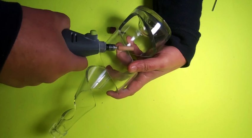 В завершение необходимо зашлифовать острые кромки на бутылке. Делаете это тоже бормашиной, но со шлифовальной насадкой. Эту работу следует проводить уже в респираторе, чтобы не дышать стекольной пылью.