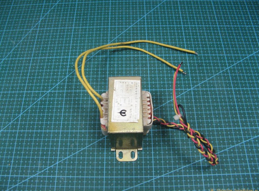 Маломощный трансформатор от 9-15 Вольт. Мощность маленькая.