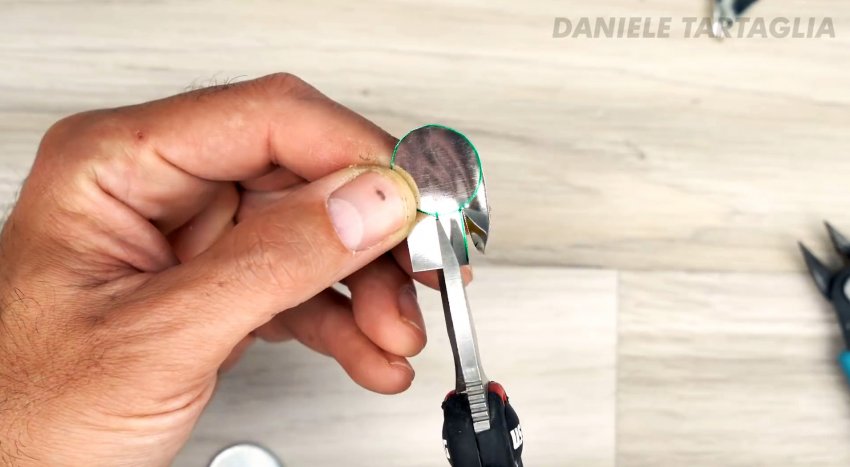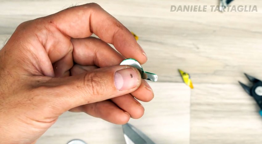 Разгибаем металл и вычерчиваем приспособление в виде круга с язычком.