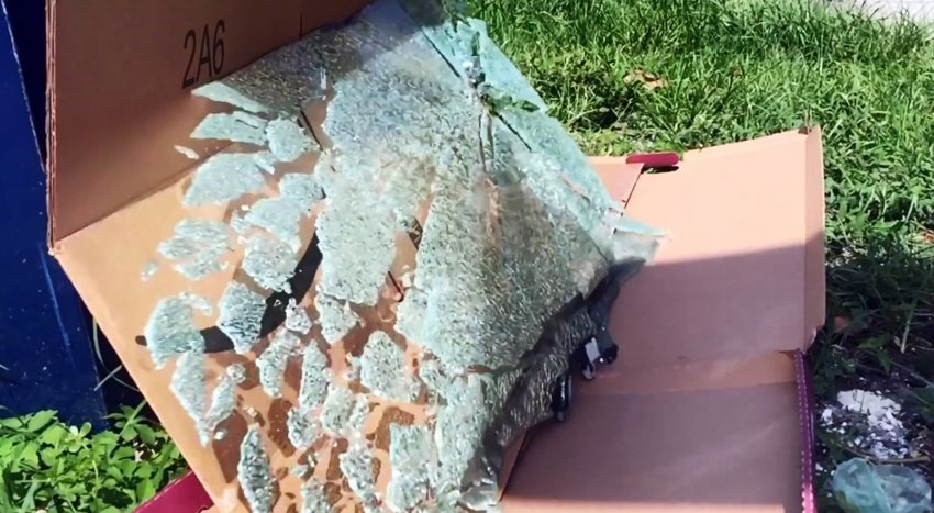 Керамический обломок изолятора нужно бросить в стекло, подобно дротику, острием вперед.