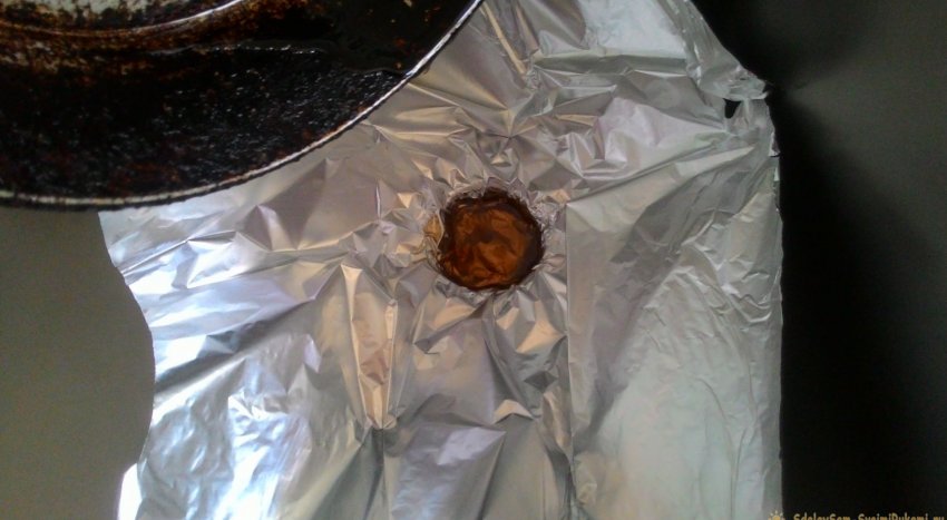 Что делать? Прежде чем «освободиться» от масла, оторвите кусок фольги и вставьте его в сливное отверстие. Выливайте масло на фольгу.