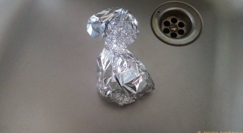 Затем просто скрутите фольгу в форму мешочка и положите в мусорное ведро.