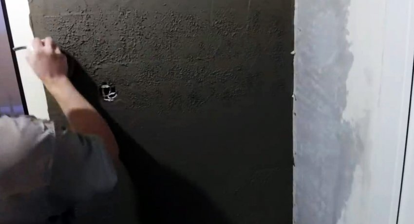 Можно закрасить стену черной грунтовкой, а после ее высыхания слегка пройтись валиком, смоченным белой акриловой краской. Он закроет только выпуклости, а впадины останутся темными.