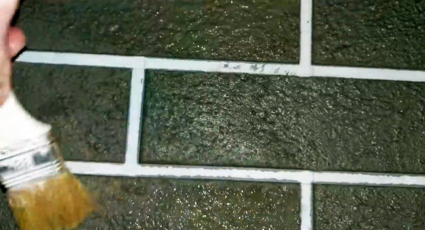 Через 1,5-2 часа требуется смазать острые кромки кирпичиков мокрой кистью. Если этот момент упущен, то сгладить застывшие края можно шпателем.