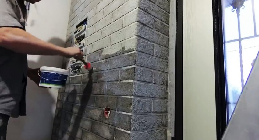 Так как используется плиточный клей, а не шпаклевка или гипсовая плитка, то такая имитация не нуждается в обязательном покрытии интерьерным лаком.