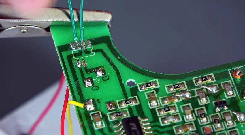 Отпаиваем контакты динамика и выпаиваем микросхему синтезатора.