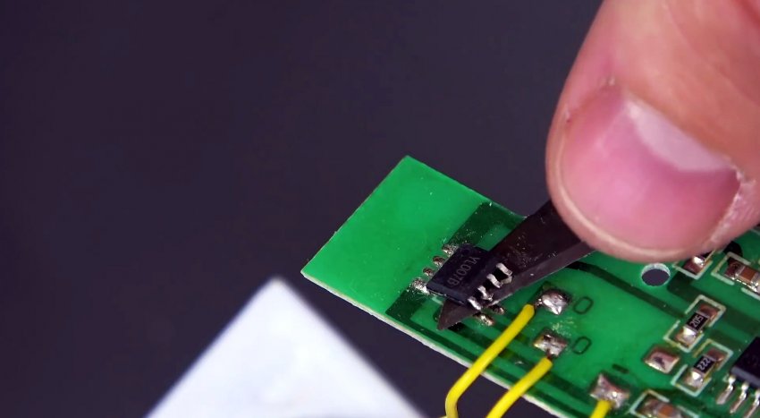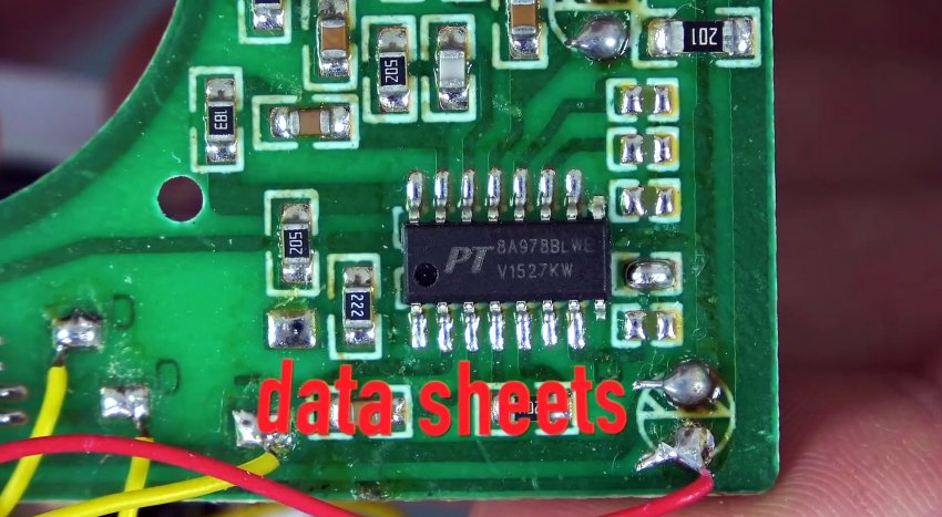 Чтобы понять что к чему, давайте разберемся. На плате установлены 2 микросхемы. Чтобы понять за что отвечает каждая микросхема, можно поискать в интернете даташит на них. В данном примере, та что на фото, является схемой приемника.