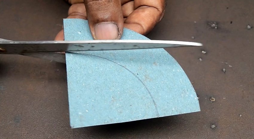 Циркуль разводится так, чтобы иголка стала на угле сектора, а грифель попал на отмеченную точку. В этом положении нужно нарисовать на шаблоне окружность. По полученной линии он обрезается.