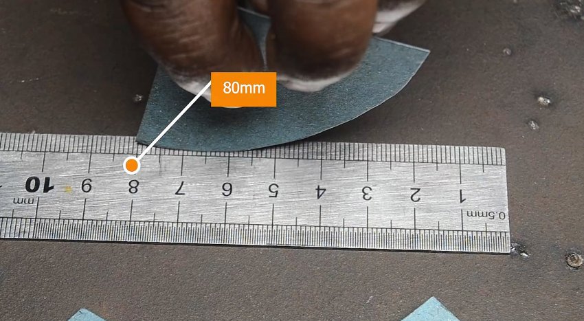 Далее требуется замерить окружность шаблона после обрезки. В данном случае она из 120 мм стала уже 80 мм. Чем шире металл для изгиба, тем меньше получится длина второй окружности.
