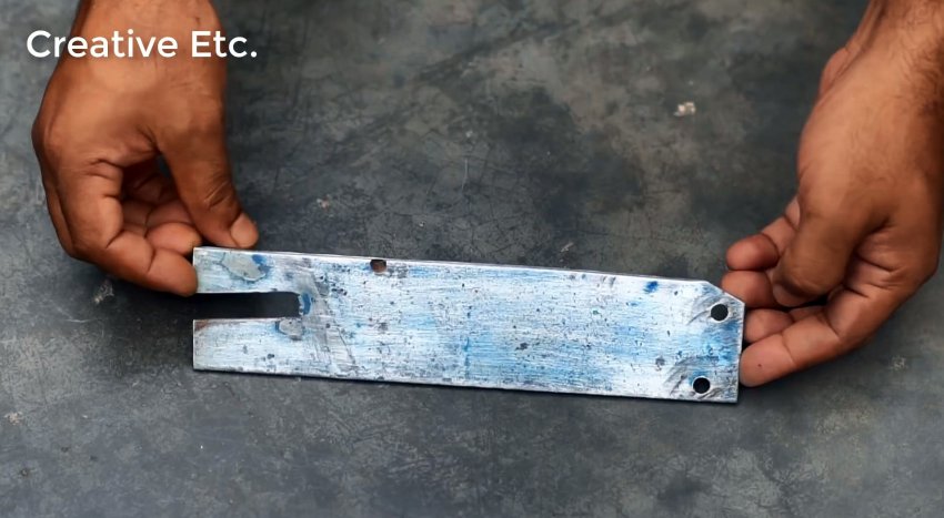 Под него из листовой стали вырезается крепежная пластина, чтобы прикрутить его на трубку передней вилки велосипеда.