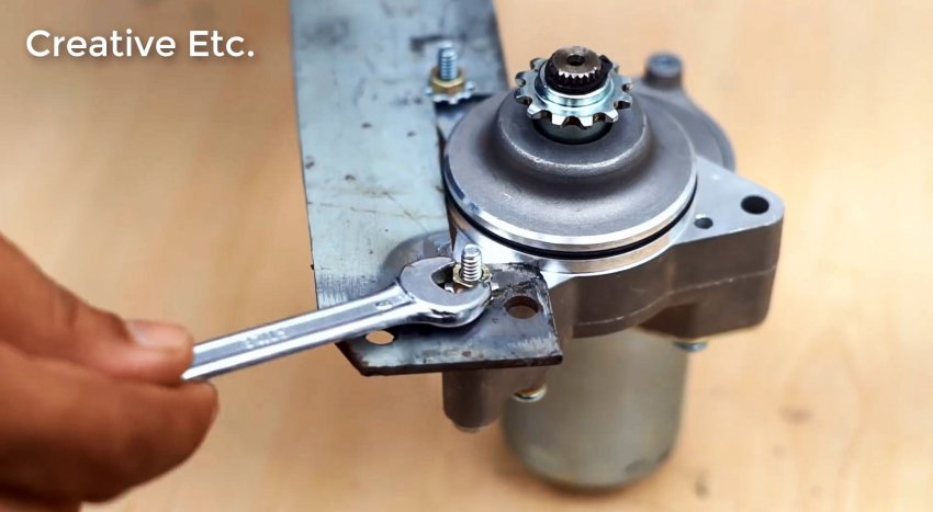 Пластину со стартером нужно прикрутить к передней вилке. Можно ее просверлить в нескольких местах.