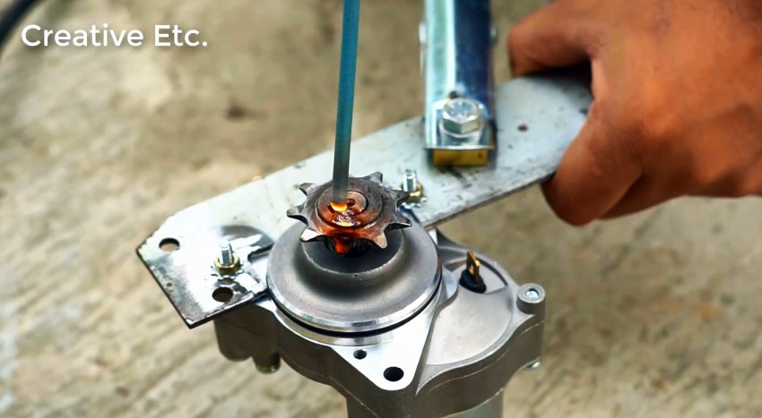 Затем на него наваривается велосипедная звездочка с 9 зубьями.
