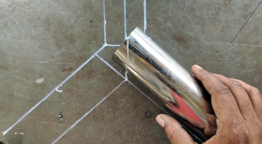 Затем они располагаются на ровной плоскости, чтобы визуально обозначить угол сваривания.