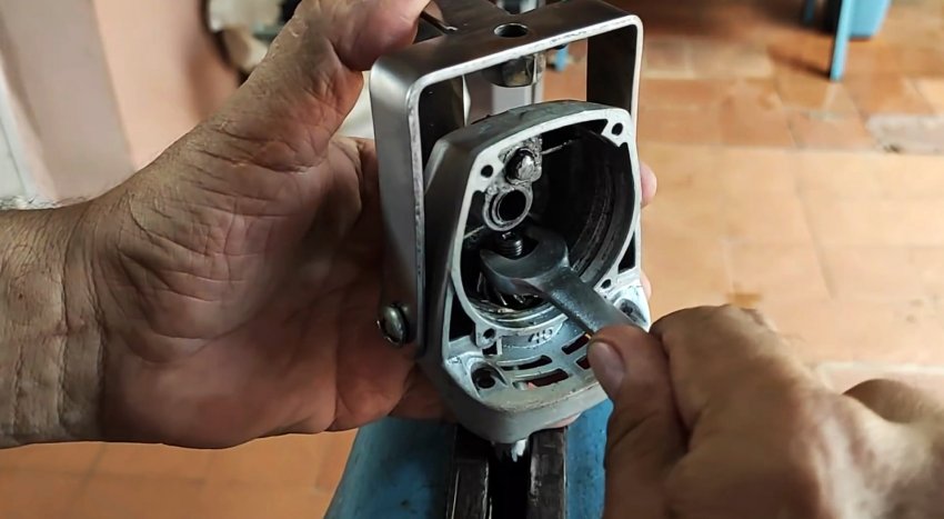 Далее требуется разобрать редуктор и вытащить спиленный вал.