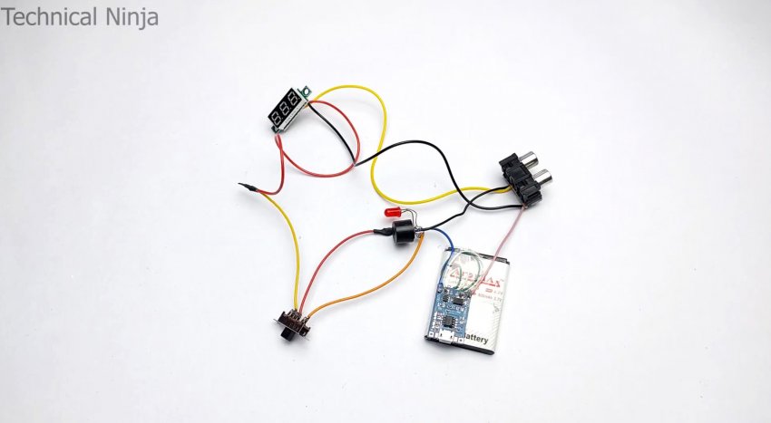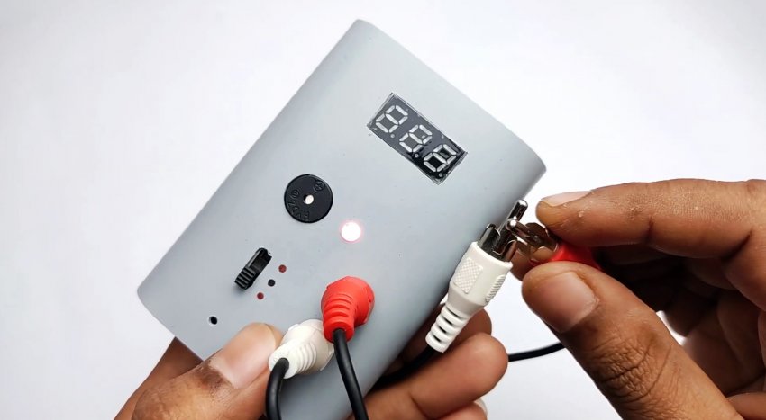 В итоге получаем аккумуляторный вольтметр, со щупами из RCA кабеля. Им можно проверять напряжение в сетях постоянного тока, а также делать прозвонку со звуковой и световой индикацией.