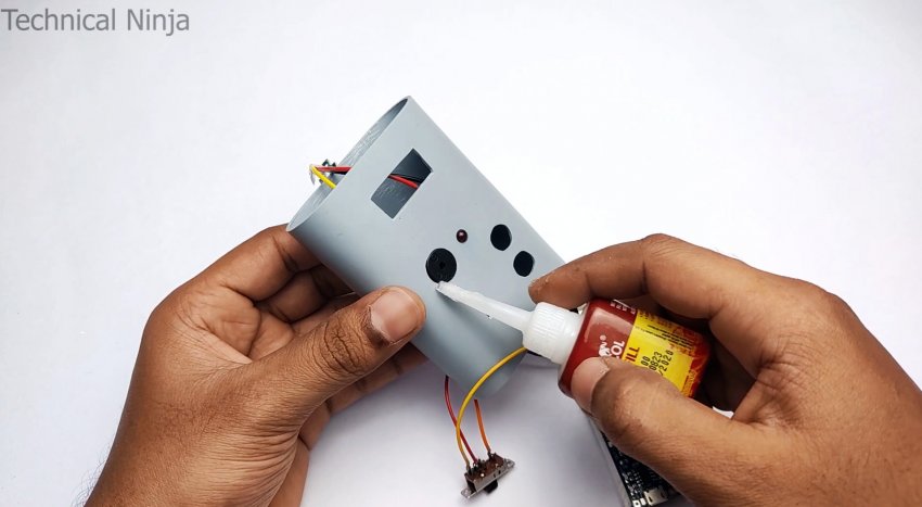 После этого компоненты соединяются согласно схеме, и помещаются в корпус, где фиксируются клеем.