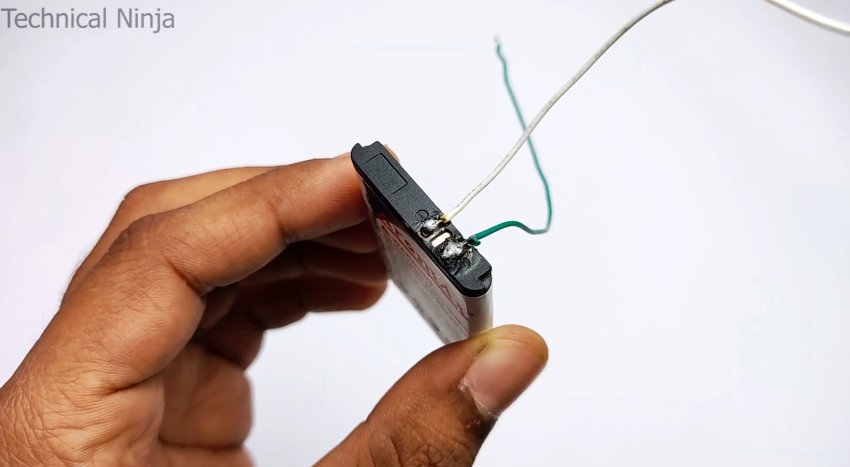 К боковым контактам батареи припаиваются короткие провода.