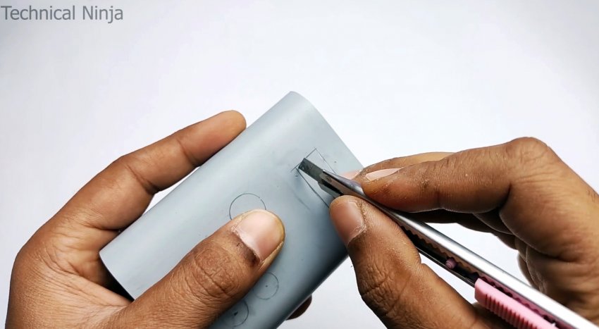 На одной заглушке прорезается отверстие под Micro USB кабель.