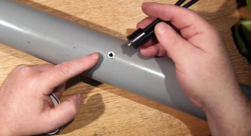 Далее антенна вставляется в отрезок ПВХ канализационной трубы, которая послужит для нее защитным кожухом.