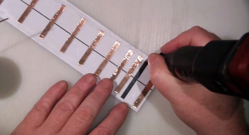По краям оставленной полосы сверлятся тонкие отверстия.