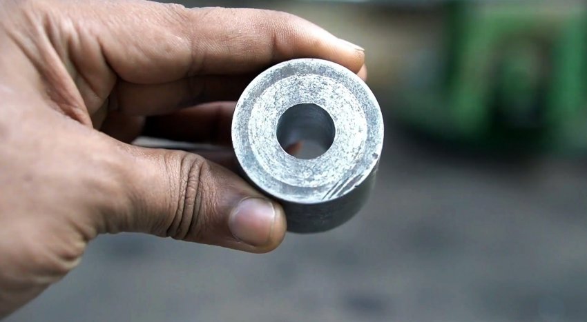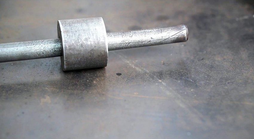 На пруток надевается тяжелая втулка. Ее можно выточить на токарном станке или просто просверлить круглую болванку.