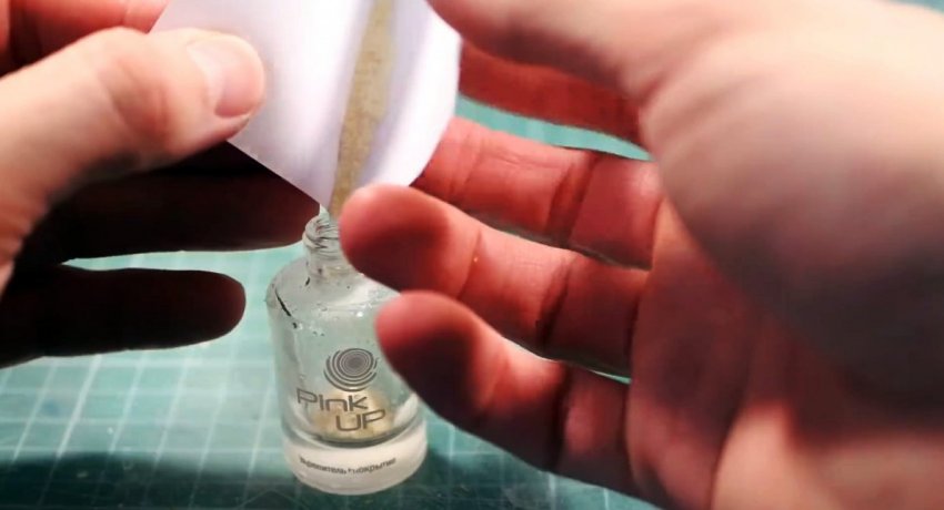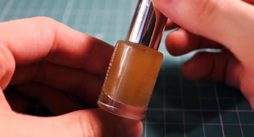 Раствор удобно хранить в пузырьке из-под лака для ногтей, так как в нем есть кисточка.