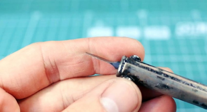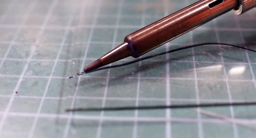 Полученное лезвие при нагреве будет резать пластик как масло. В дальнейшем для пайки жало можно перевернуть обратно рабочей стороной наружу.