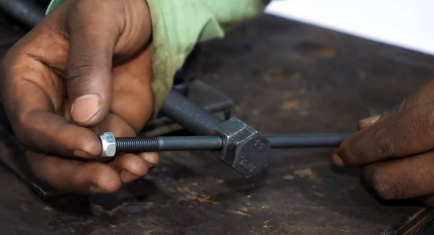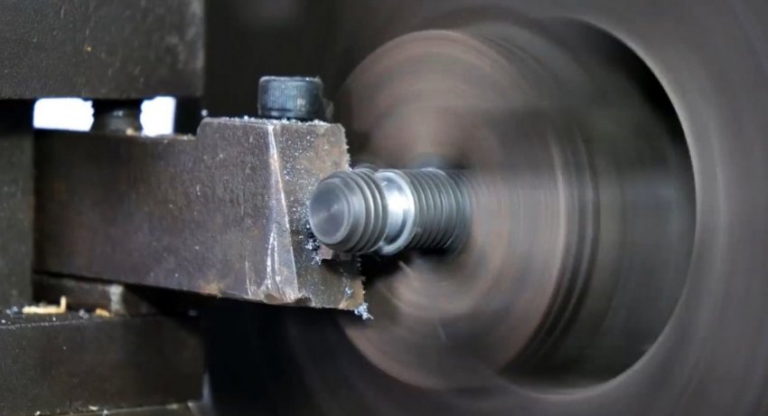 В качестве винта тисков используется шпилька с упорной резьбой из твердой стали. С одного конца в ней нужно сделать проточку под стопор.