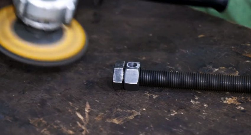 На второй край нужно накрутить гайку, и просверлить ее вместе со шпилькой, чтобы ставить ручку.