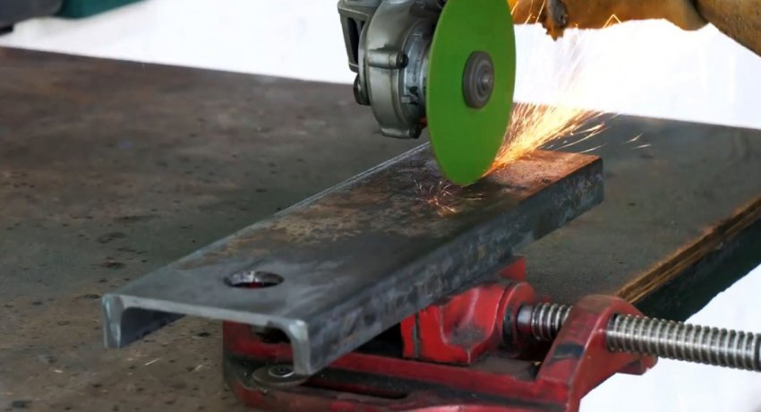 По центру швеллера делается широкий вырез со строго параллельными сторонами. По нему будет скользить подвижная губка.