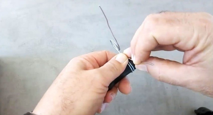 Ее второй конец нужно обрезать под острый угол и сделать на острие неглубокую канавку под проволоку. Ее лучше всего нарезать гранью треугольного напильника.