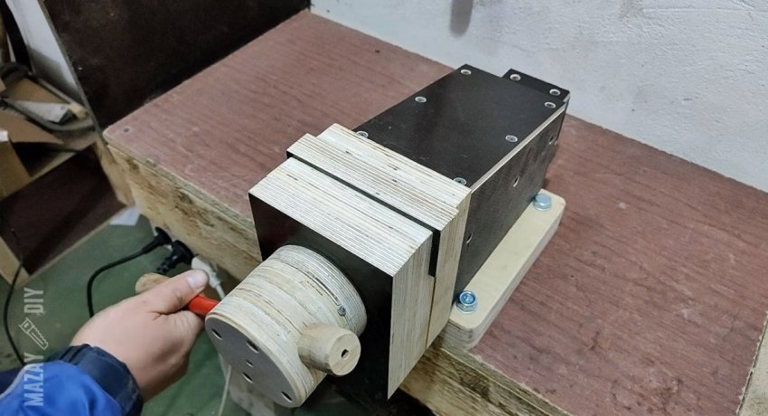 На выбранную четверть губок прикручиваются накладки из ламинированной фанеры 12 мм. Далее следует заняться воротком тисков. Для него потребуется вырезать коронкой из фанеры 4 диска диаметром 90 мм, которые нужно будет склеить в оголовок.