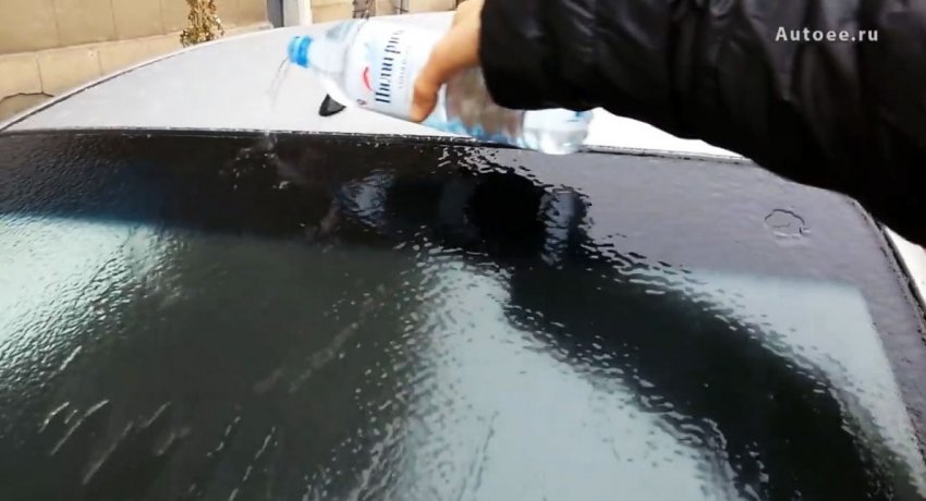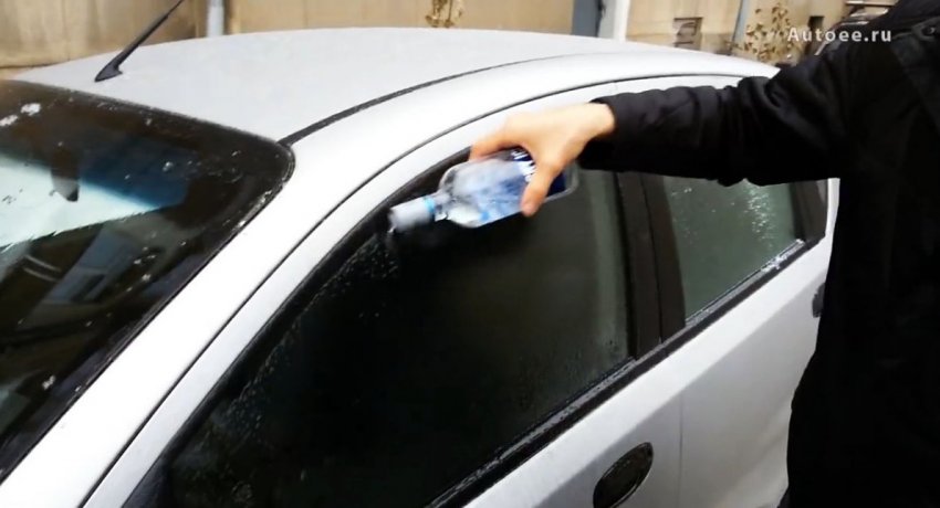 Можно использовать специальные жидкости размораживатели для стекол. Это удобный простой вариант, но не бесплатный.