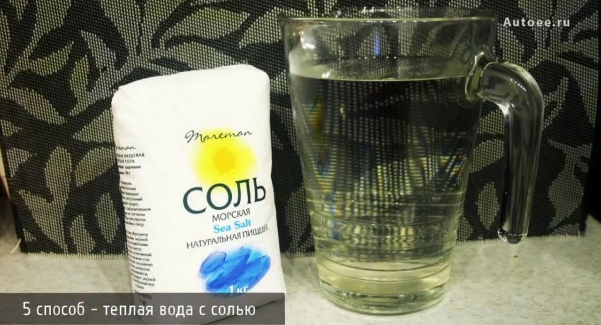 Соленая теплая вода работает еще лучше, но соль портит краску, резинки и металл, поэтому этот способ вообще лучше не использовать.