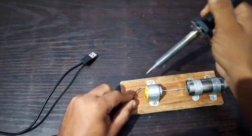 К контактам электродвигателя припаиваются провода.