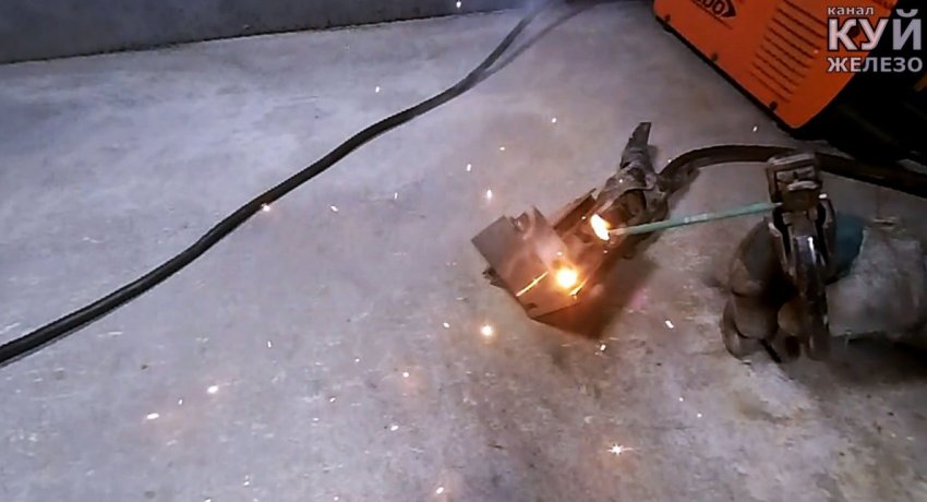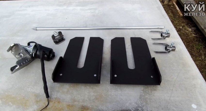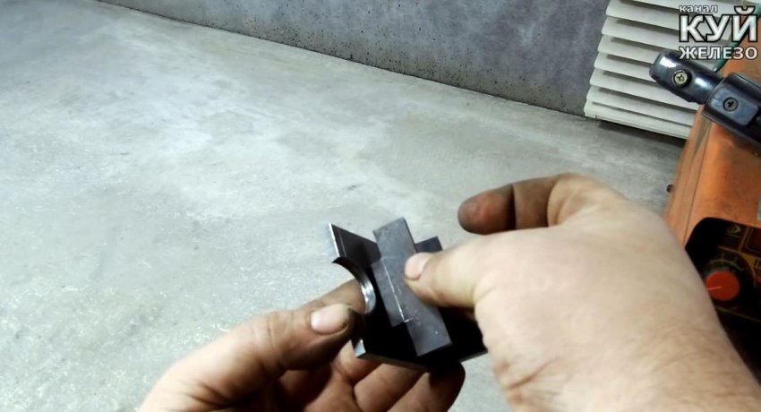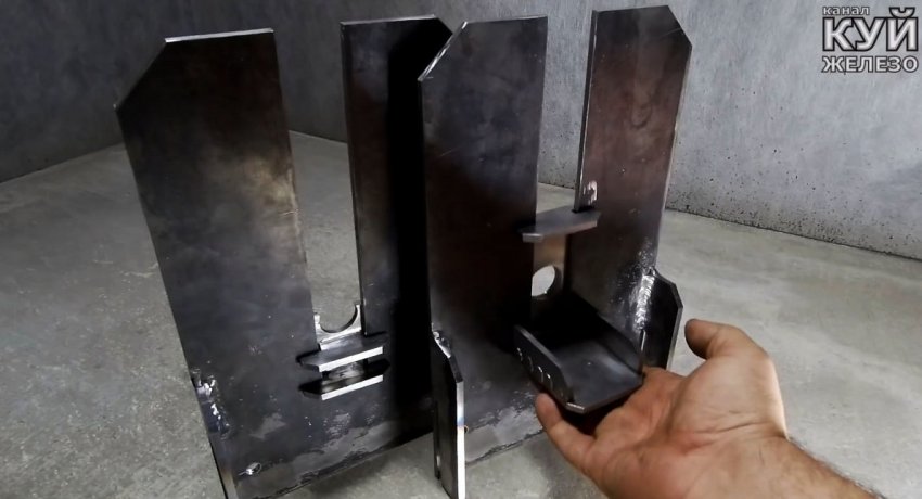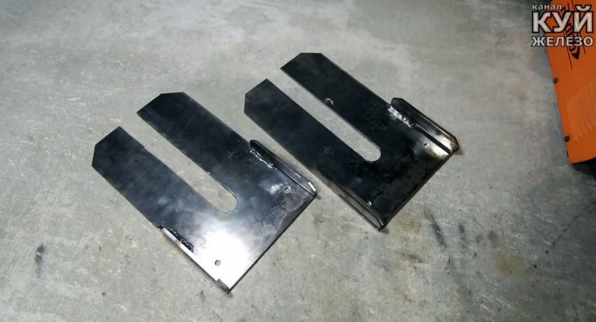 Первое крепление под мотор-редуктор делается как на фото. В стороне в нем сверлится отверстие, и нарезается резьба М10. Также сваривается вторая деталь, и тоже оснащается отверстием с резьбой.