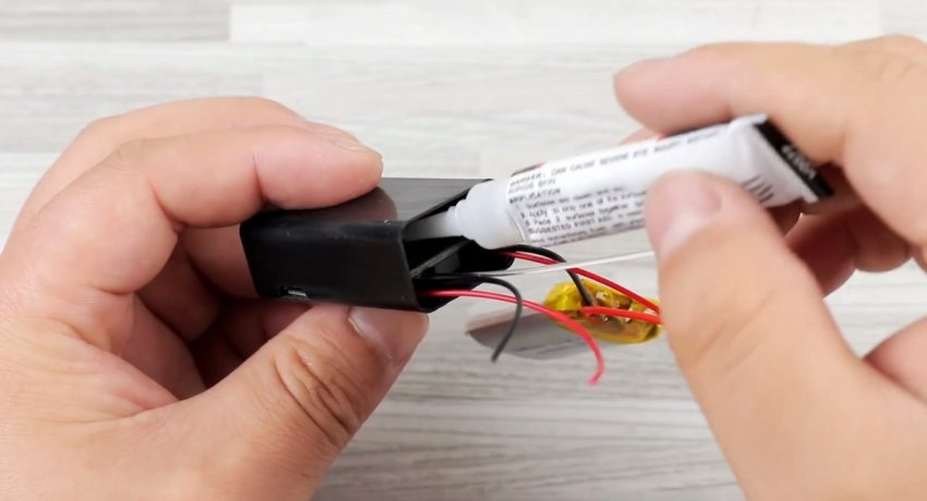 Приклеиваем колодку к корпусу. Световод откусываем.