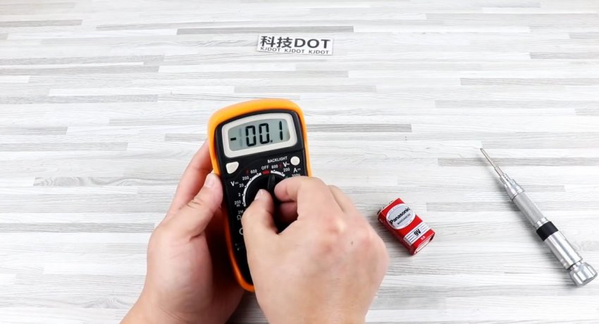 Проверяем работу мультиметром. При включенном переключателе, на колодке должно выходить 9 Вольт.