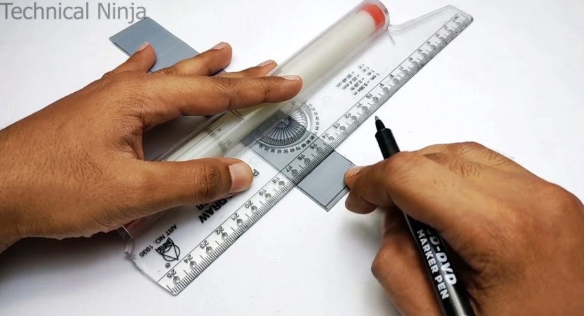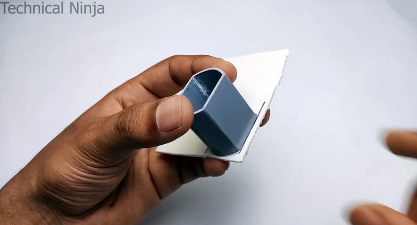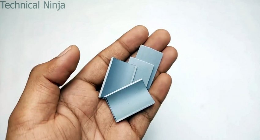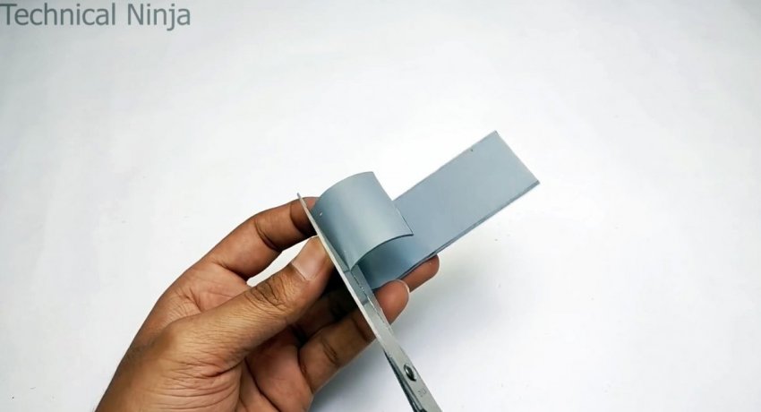 Из него вырезается полоса. От нее отрезается 2 прямоугольника для изготовления корпуса двигателя.