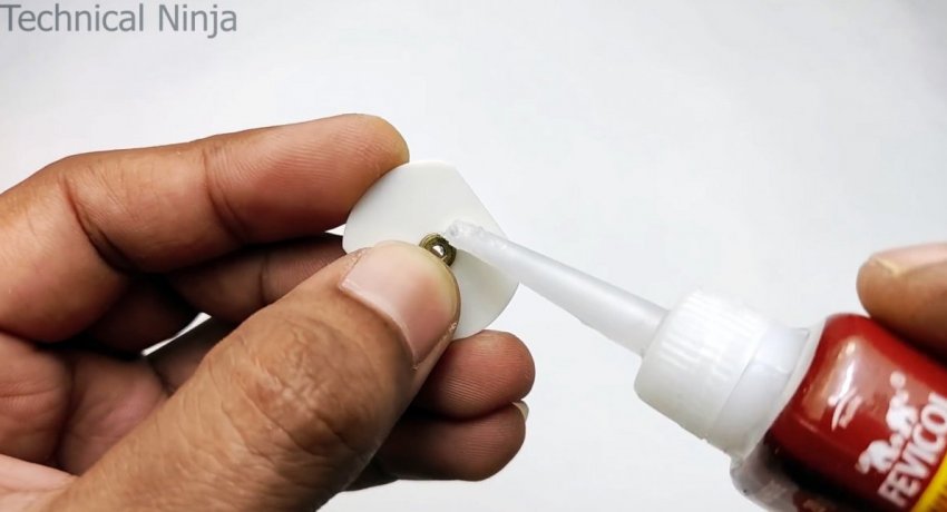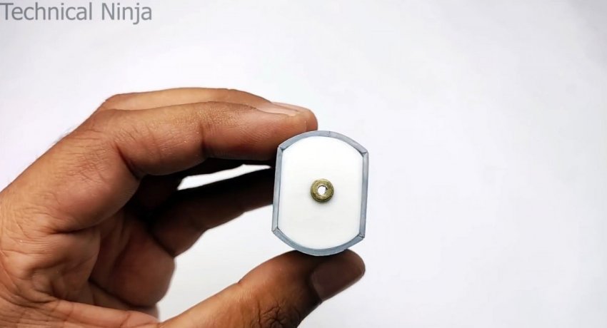 Из любого сломанного электромотора аналогичного размера нужно демонтировать втулки. Одна их них вклеивается на заглушку самодельного корпуса. Затем приклеивается и сама передняя стенка.
