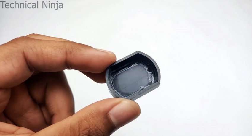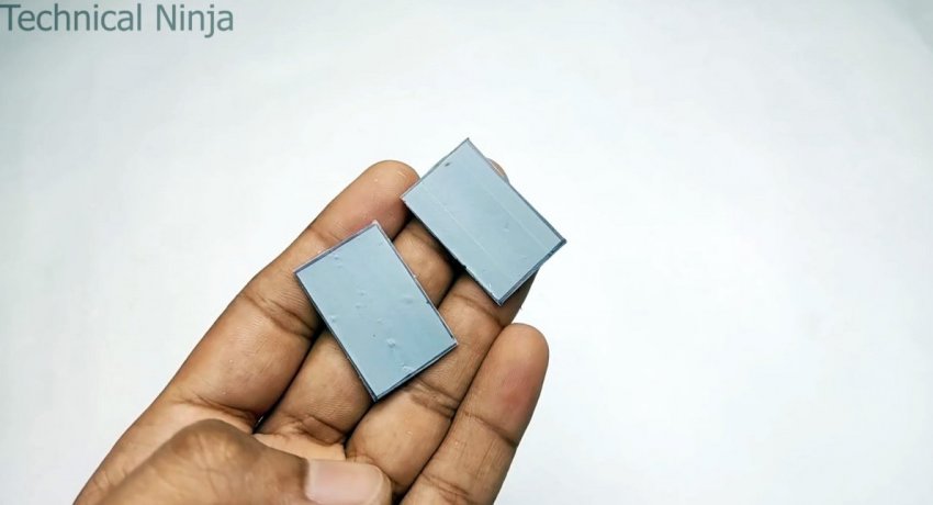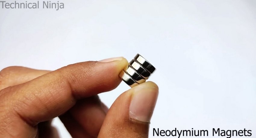 Далее нужно склеить вместе 2 пары неодимовых магнитов, развернув их полюсы противоположно. Они вклеиваются в корпус двигателя со стороны выгнутых боковин.
