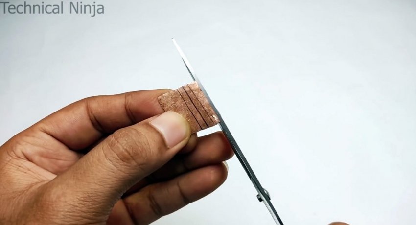На следующем этапе изготавливаются щетки. Для этого необходимо разрезать и разровнять медную трубку, затем вырезать из нее полоски. В задней крышке делаются пропилы, и в них вставляются выгнутые щетки. Снаружи их следует подпереть вклеенной полоской их ПВХ.