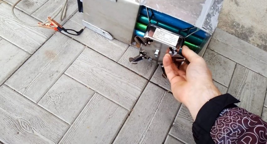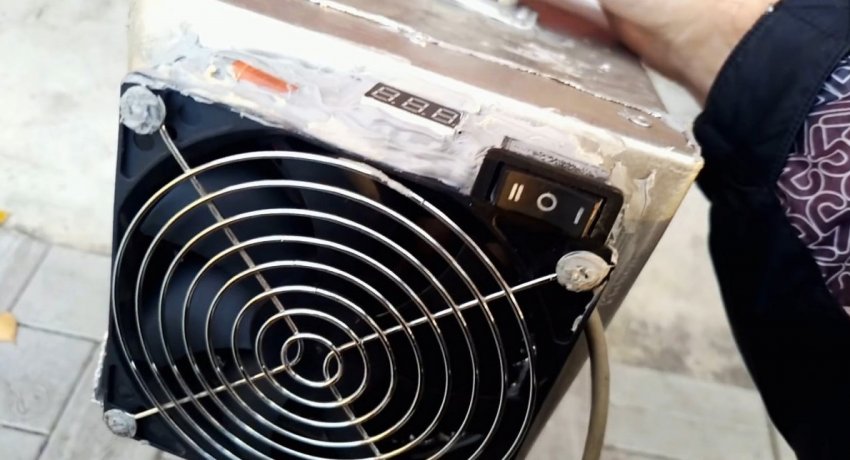 Далее подводятся провода для подключения кулера к аккумулятору. Можно сделать двухрежимный вентилятор, поставив сопротивление. При возможности устанавливается вольтметр для контроля остатка заряда на батареи.