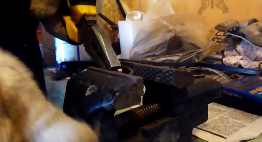 После демонтажа требуется сжать С-образную пружину. Это делается тисками.