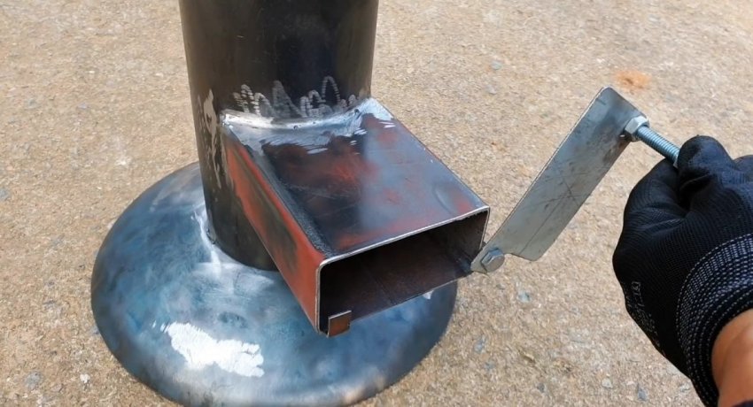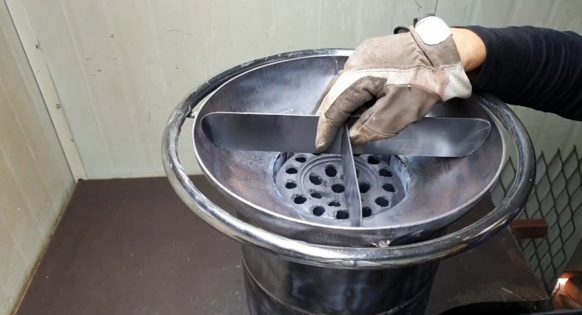 Для удобства верхний грибок можно окантовать, вварив кольцо из согнутой трубы. На поддувало внизу делается воздушная заслонка.
