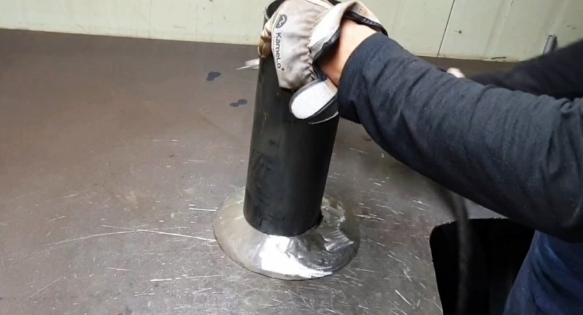 Труба будет использоваться в качестве ножки мангала, а вваренная вверху крышка выступит фальшдном. Оно нужно, чтобы приподнять топливный брикет повыше к области готовки.